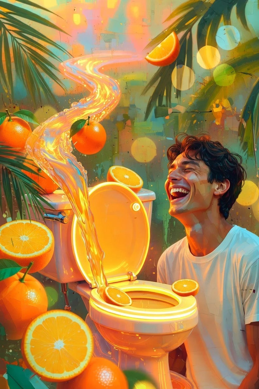 Of course, medicine being medicine, there’s always a punchline. They sent me home with Pyridium — phenazopyridine — to calm the post-procedure irritation. If you’ve never taken it, imagine your urine suddenly deciding to cosplay as Tropicana orange juice. The first post-catheter pee wasn’t just relieving; it was neon. I stared into the toilet and laughed out loud, half from joy, half from the sheer absurdity. My body was free, but now it was putting on a light show.